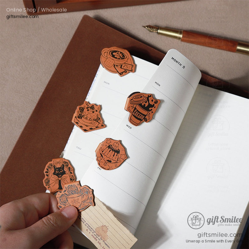 Cat And Tea Themed Magnetic Leather Bookmarks | KS-BM-109