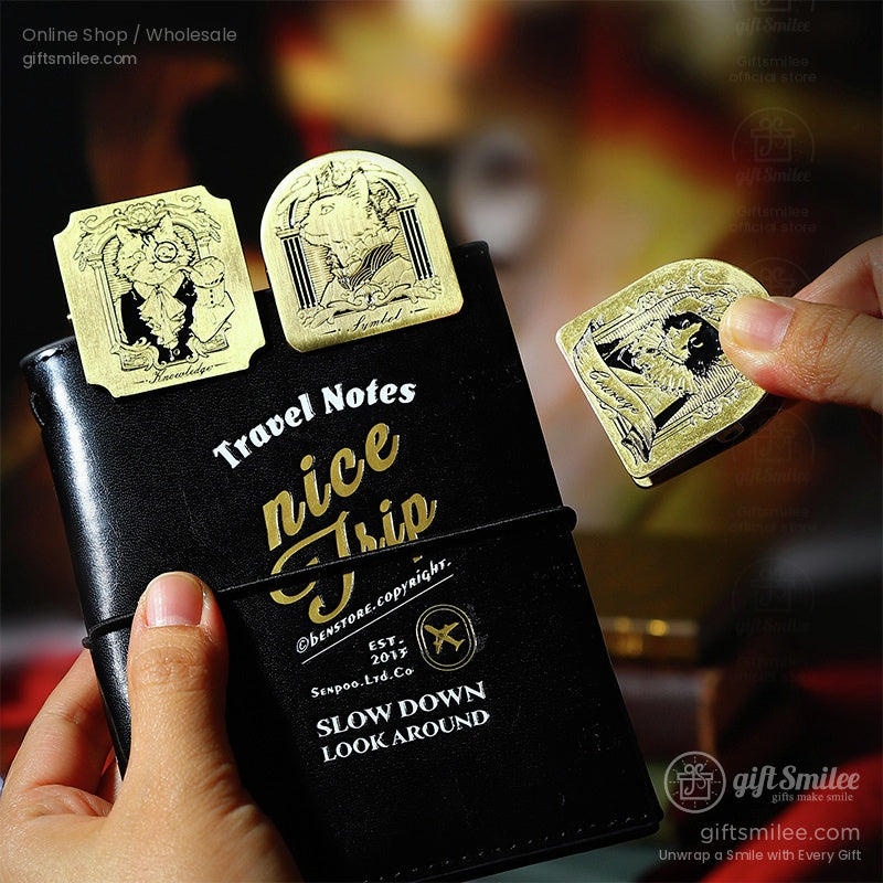 Antique Brass-Tone Zinc Alloy Engraved Noble Cat Motifs Metal Bookmark Clips | KS-BM-118