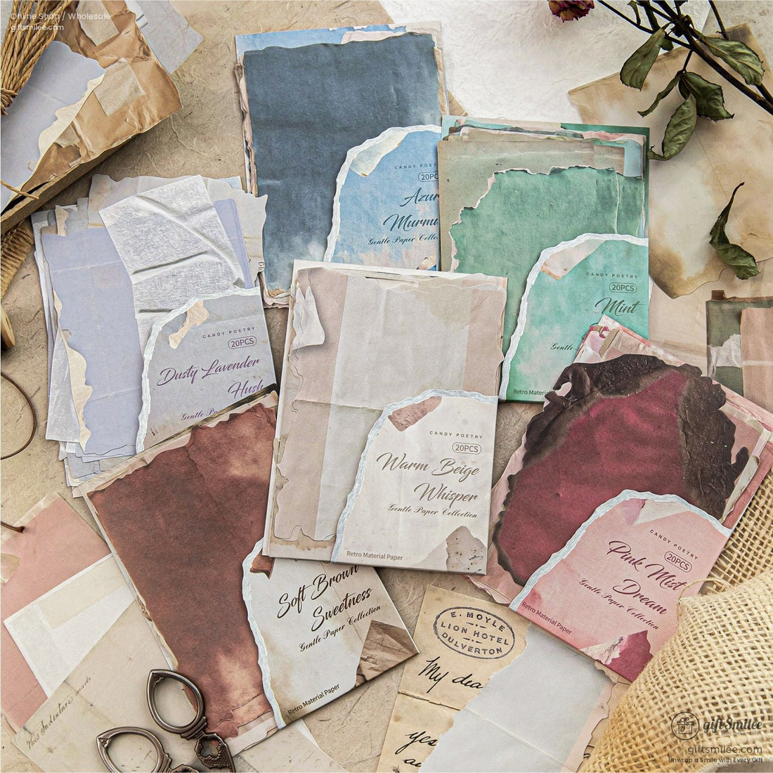 Vintage Textured Tear-Edge Pastel Assortment Decorative Paper Pack | KS-CK-1240