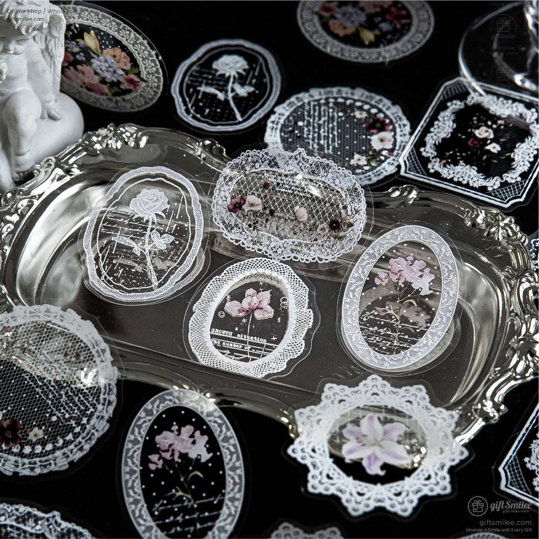 Pet White-Ink Lace Floral Transparent Decorative Stickers | KS-SA-4332