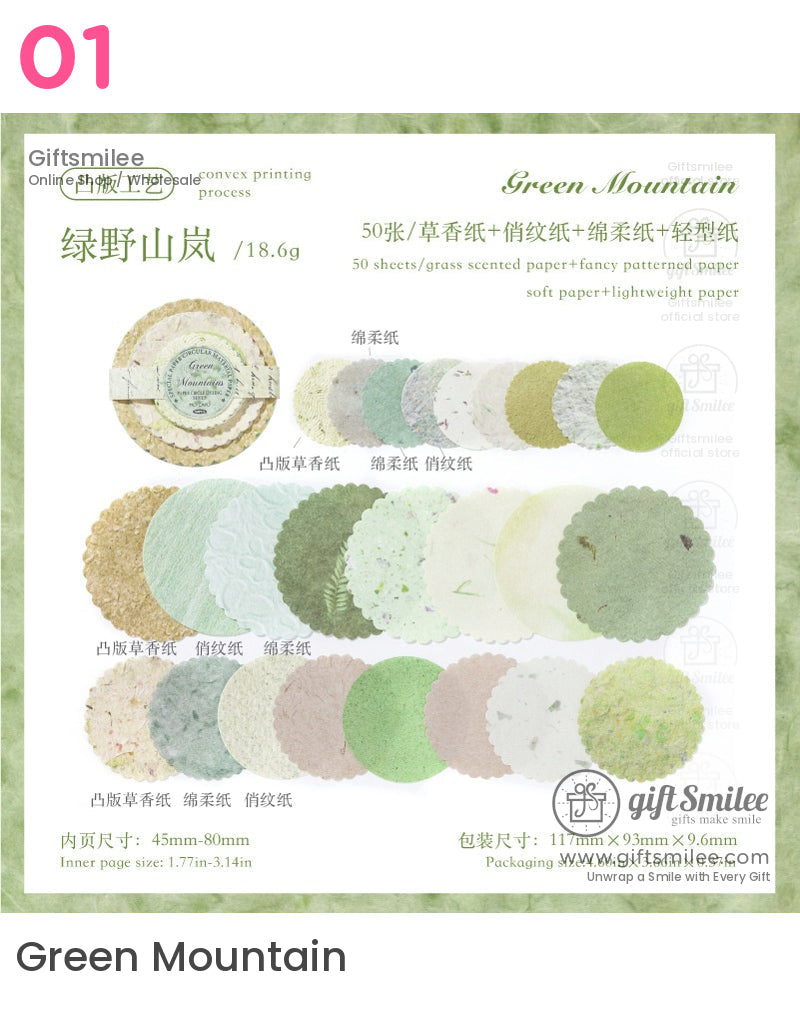Grass scented paper + embossed paper + soft paper + lightweight paper