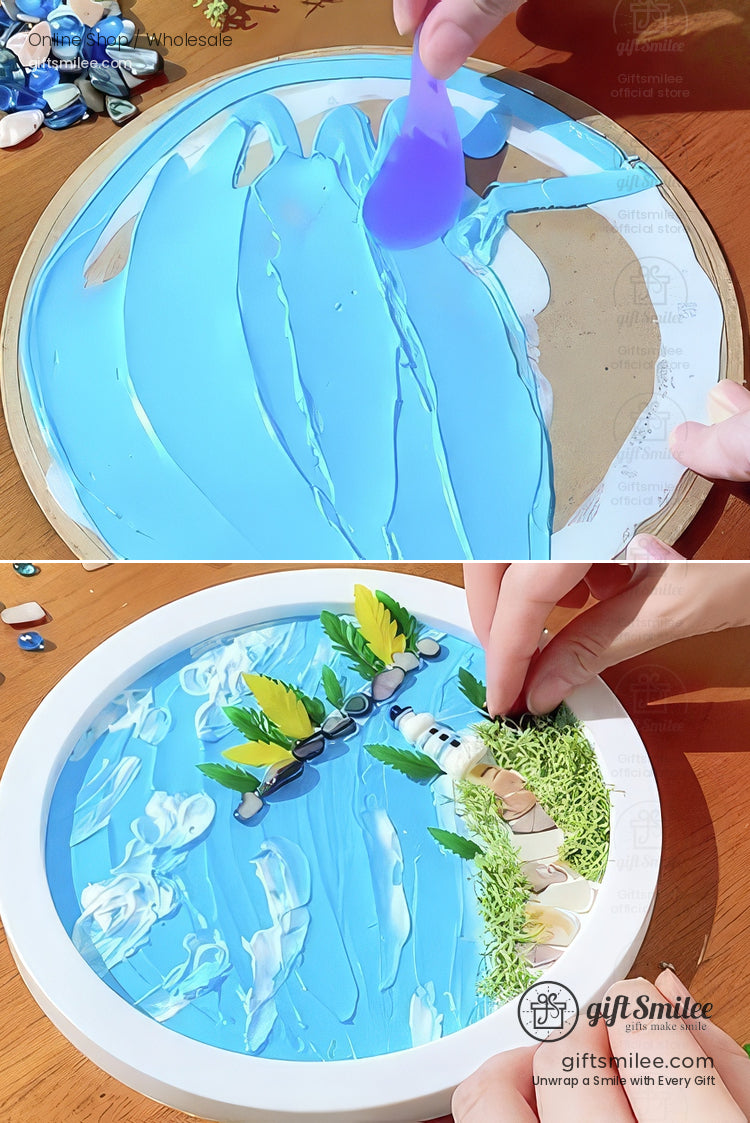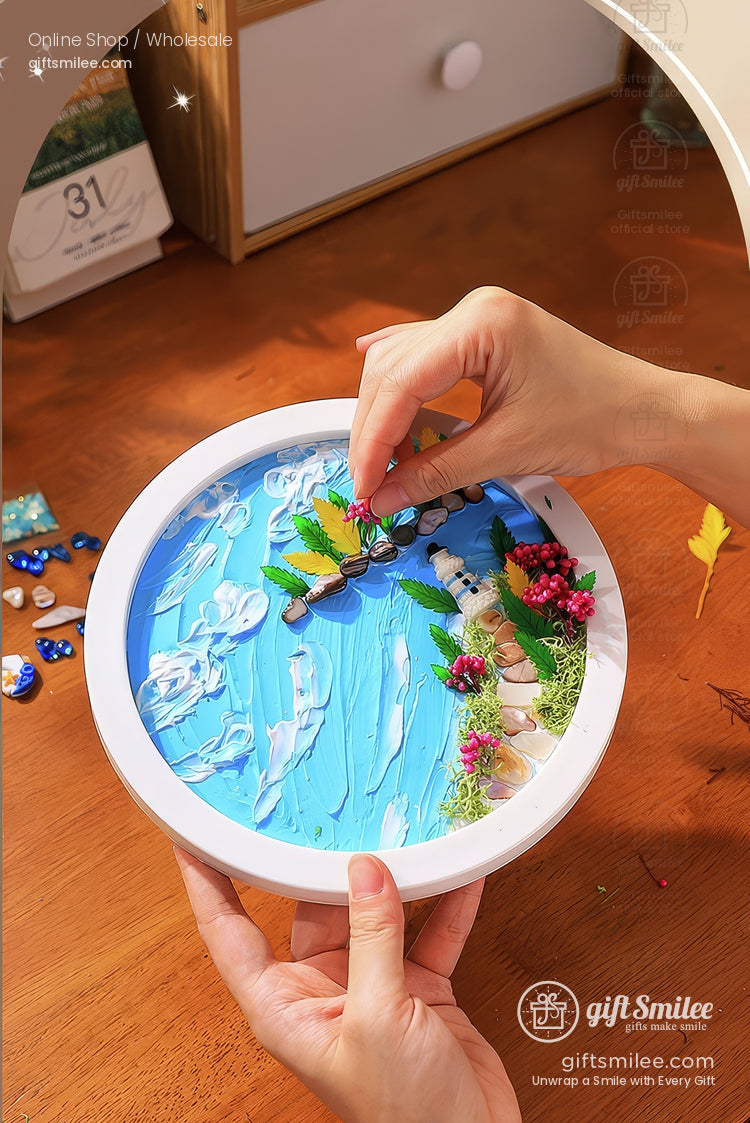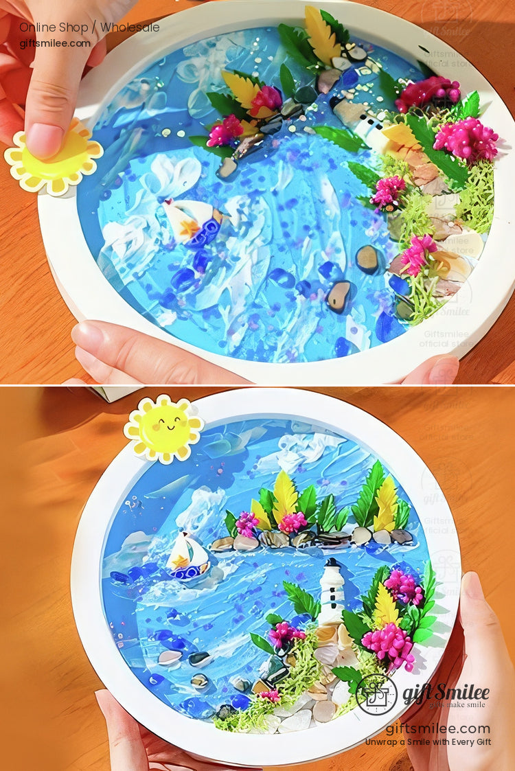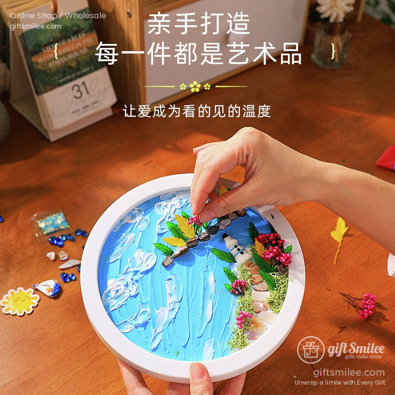 Whipped Clay Round Panel With Shells Glitter Diy Texture Painting Kit | KS-GS-128