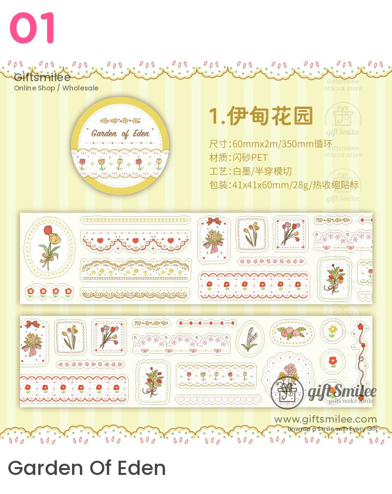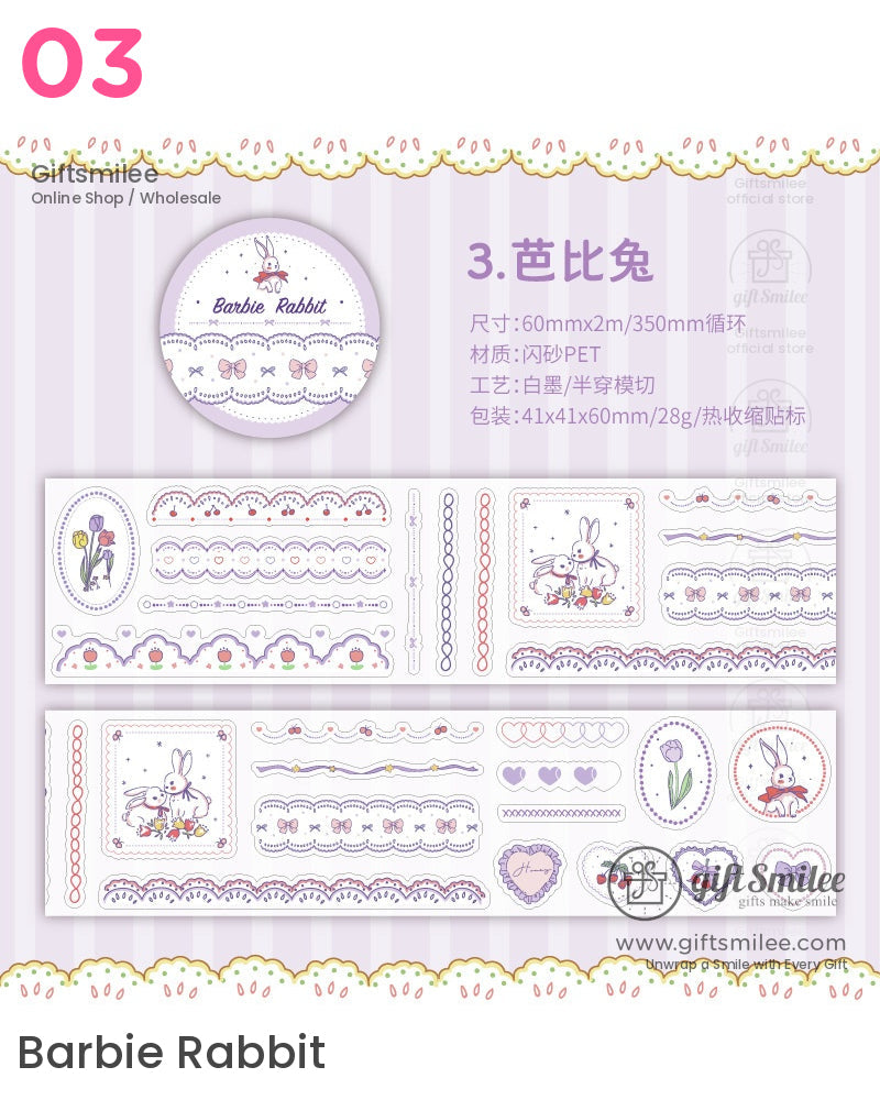 Pastel Washi Floral Bunny And Strawberry Die-Cutting Tape | KS-RT-1622