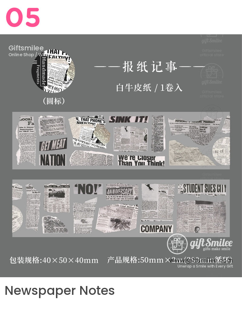 Pet Transparent Pre‑Cut Vintage Collage Decorative Washi Tape Stickers | KS-RT-1727
