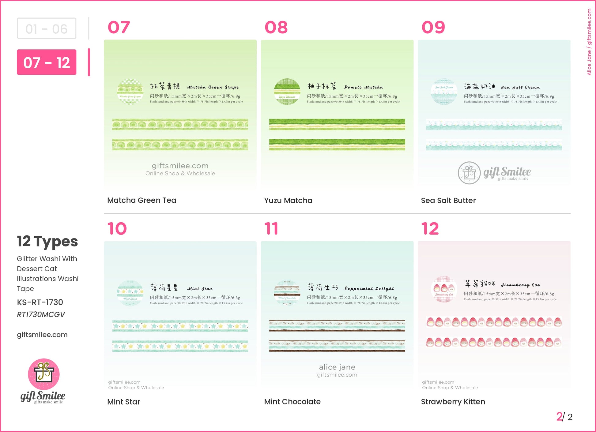 Glitter Washi With Dessert Cat Illustrations Washi Tape | KS-RT-1730