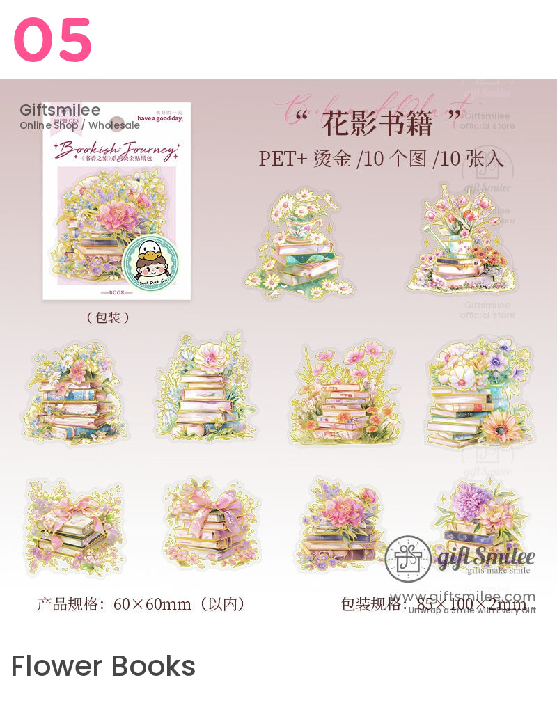 Bookish Journey Holographic Floral Sticker Packs | KS-SA-4008