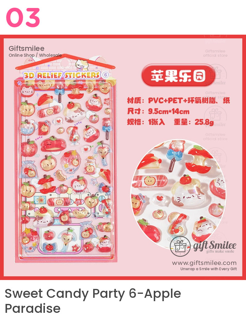 Kawaii 3D Fruit Dessertand Animal 3D Embossed Cute Stickers | KS-SA-4023