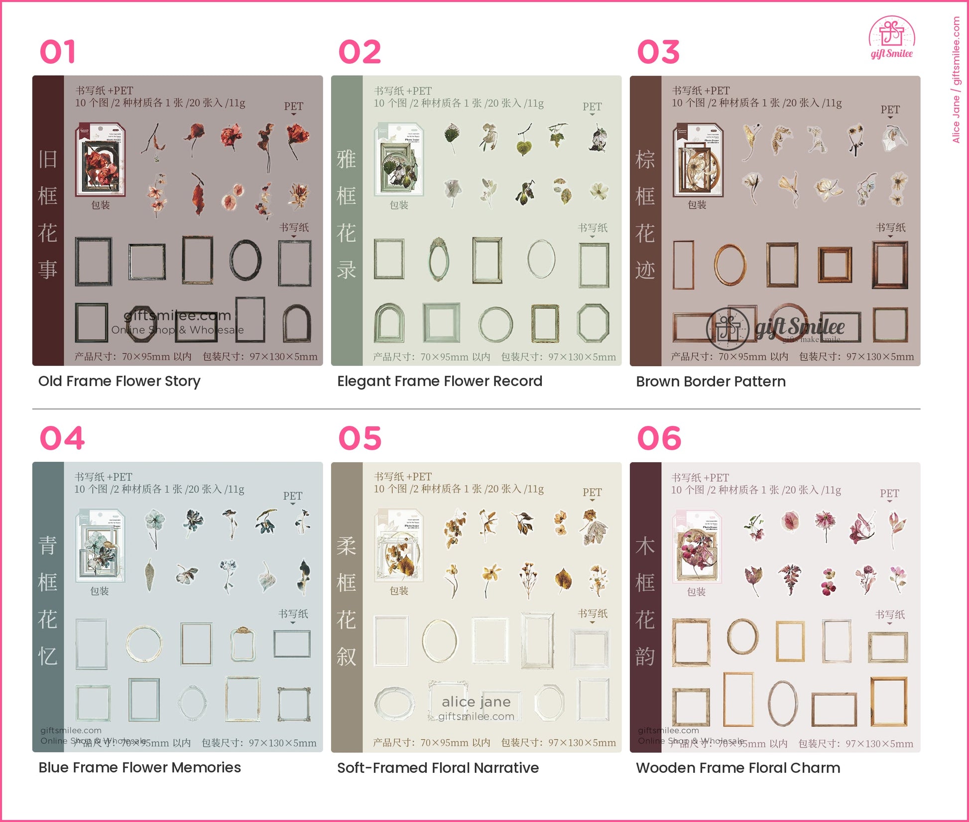 Matte Pet Transparent Overlap Vintage Frame Dried-Flower Prints Sticker Pack | KS-SA-4260