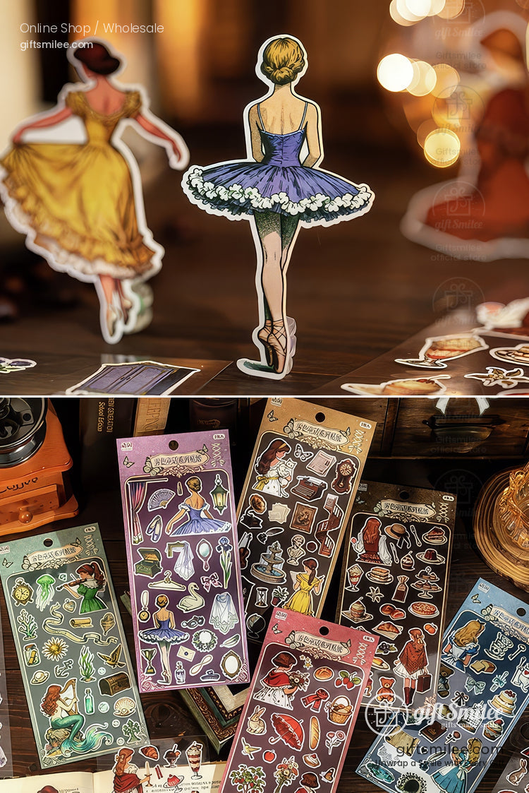 Vintage Matte Pet Die-Cut Rich Ink Illustrations Sticker Sheets | KS-SA-4263