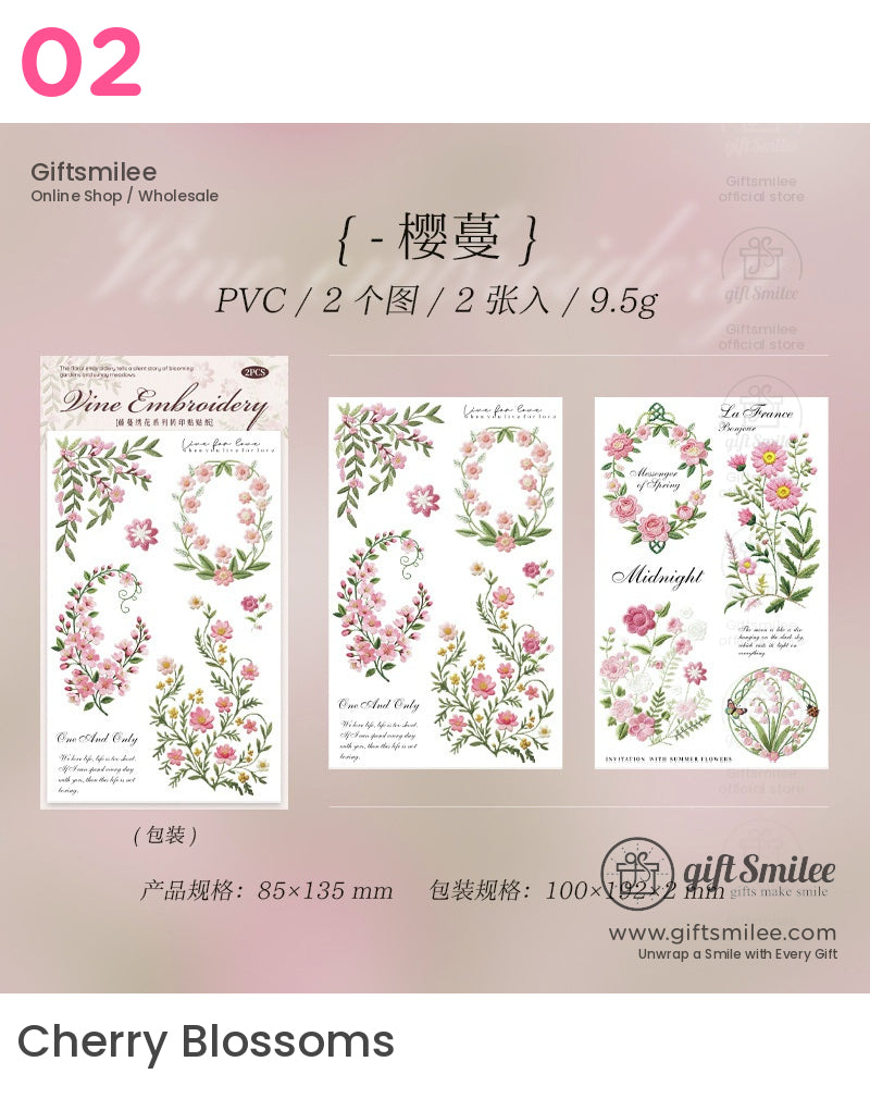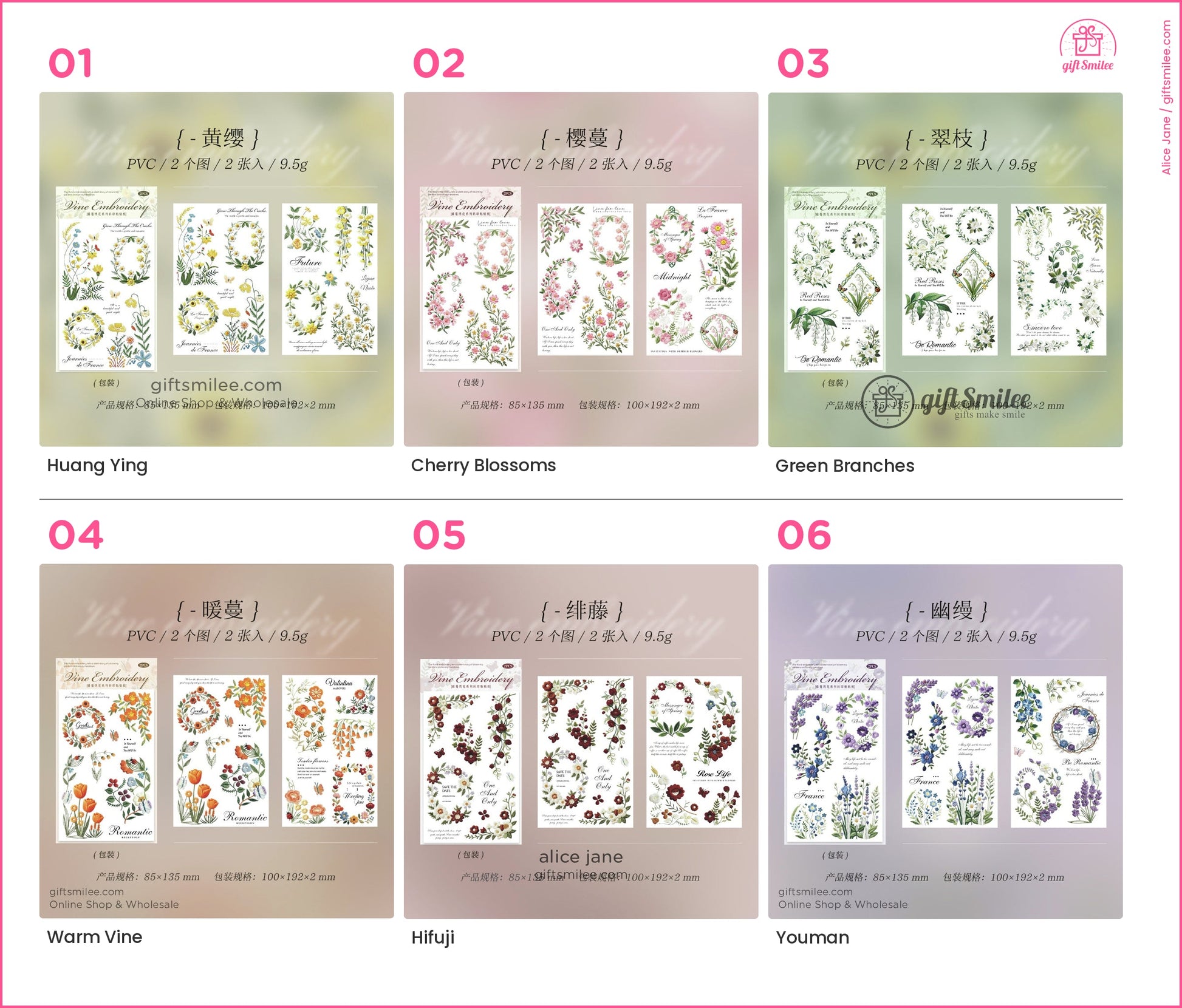 Embroidery-Effect Floral Rub-On Assorted Set Rub-On Transfer Stickers | KS-SA-4308